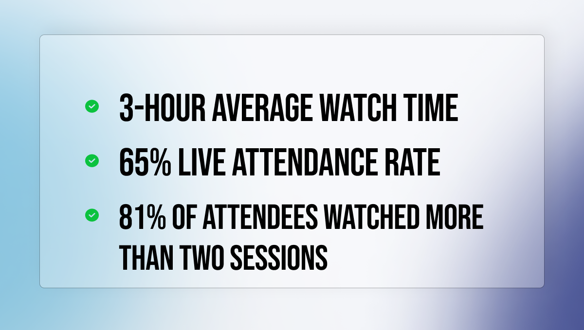 “Working with Airmeet felt like having an extension of our own team,” Hoefer concluded. “Their dedication and round-the-clock support ensured our event’s success, even with our tight timeline and high demands.”