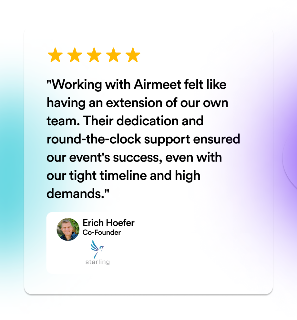 Erich Hoefer expressed his satisfaction: “Airmeet didn’t just facilitate our event; they made it happen. The professional look and seamless execution they delivered was exactly what we were looking for. We couldn’t have pulled this off without them.”