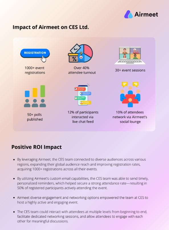 A case study on the Customized Energy Solutions, discussing the event journey and solutions Airmeet’s offered addressing CES’s event-specific requirements.